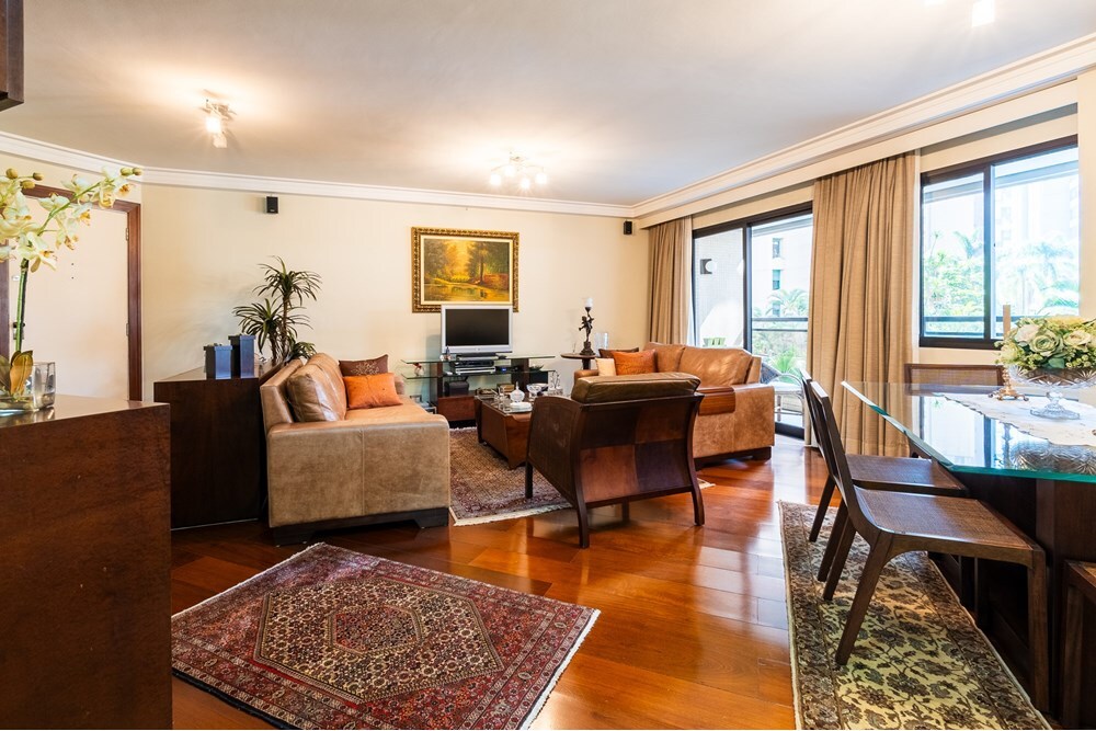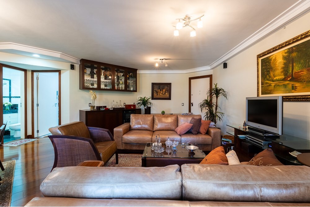 Apartamento Imperdível em Moema: Conforto e Sofisticação em Uma Localização Privilegiada Descubra o prazer de viver em um dos endereços mais cobiçados de São Paulo. Localizado em Moema, uma das áreas mais sofisticadas da cidade, este magnífico apartamento está situado em um prédio imponente com 5.000 metros de terreno, oferecendo uma combinação perfeita de conforto e elegância. Detalhes do Apartamento: Área úteis: 120 metros quadrados. Dormitórios: 3, sendo 1 suíte. Armários: Repletos de armários planejados de primeira qualidade. Suíte: Com ar condicionado. Corredor: Com rouparia. Banheiros: Todos com mármore travertino. Sala: Ampla, com dois ambientes e climatizada, piso em tábua corrida. Varanda: Com vista para o jardim do prédio. Cozinha: Repleta de armários planejados. Dependência: 1 dependência de empregada e um banheiro de serviço. Vagas de Garagem: 2. Infraestrutura do Prédio: Arrumadeira: Disponível 2 horas por dia, de segunda a sábado. Área de Lazer: Fantástica, com 2 piscinas (uma de verão ao lado de um charmoso bangalô e outra coberta e aquecida), jacuzzi, sauna, academia de ginástica e musculação, brinquedoteca, playground, um enorme jardim, salão de beleza, SPA, 2 salões de festas (capacidade para 150 e 50 pessoas), salão de jogos, PUB e coworking. Segurança: 24 horas, com serviço de manobrista, recepção e mensageiro. Gerador: Para garantir que você nunca fique sem energia. Localização Privilegiada: Restaurante Filomena Café Bistrô: Localizado no prédio, oferecendo refeições maravilhosas e um ambiente encantador. Transporte: A apenas 500 metros da estação de metrô Moema. Compras: 550 metros do Shopping Ibirapuera. Lazer: 9 minutos do Parque Ibirapuera. Trânsito: Fora da rota de avião, garantindo tranquilidade. Este apartamento é a definição de luxo e praticidade. Com todas essas comodidades e uma localização estratégica, ele é a escolha perfeita para quem busca o melhor em qualidade de vida. Não perca a oportunidade de viver neste incrível imóvel. Agende sua visita e venha conhecer o seu novo lar! Preço e disponibilidade do imóvel sujeitos a alteração sem aviso prévio.