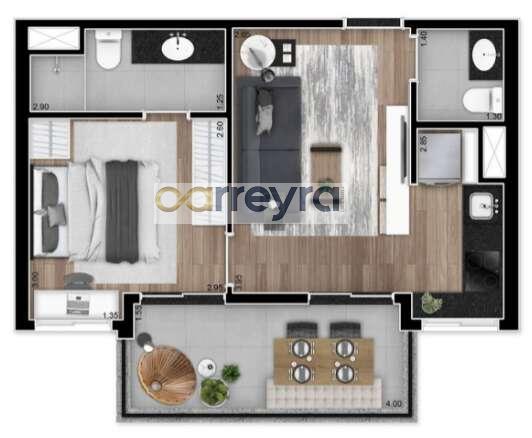 Área total de 40m² e 40m² de área útil.